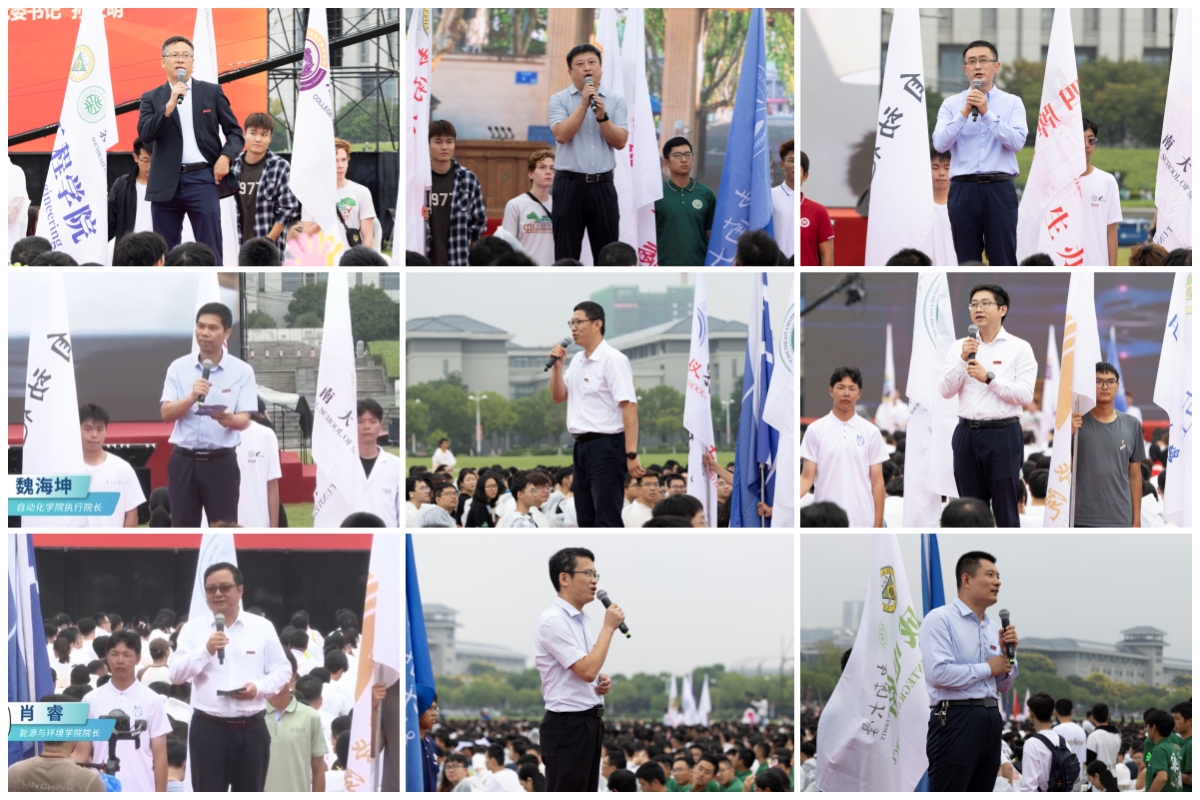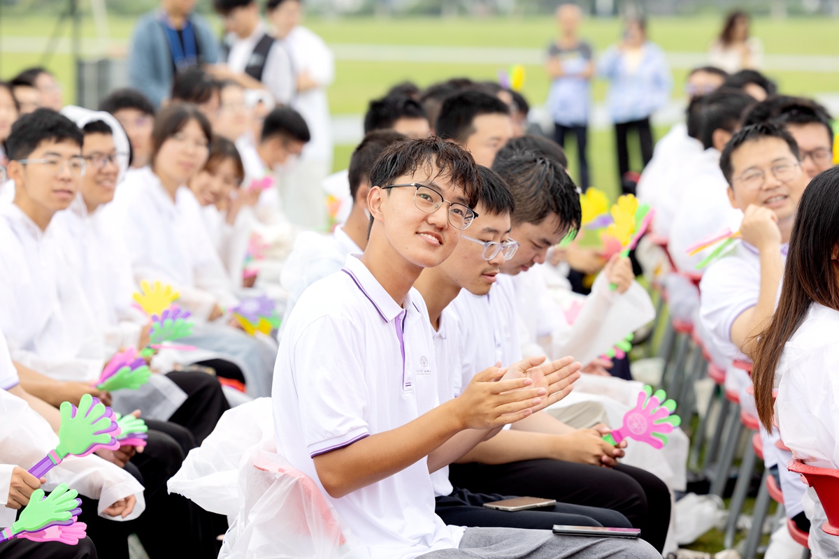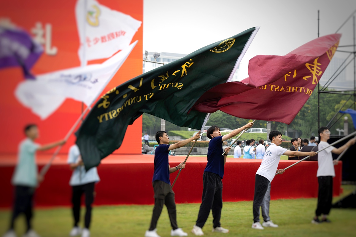 典礼上,参会的两院院士、校领导、各院系领导为2023级新生代表佩戴校徽。一枚枚“东南大学”校徽别于胸前,一句句新生誓词响彻全场,万余名新生从此正式成为一名光荣的东大人。